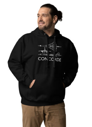 This design features a detailed schematic blueprint of Concorde — the legendary supersonic airliner that represents the pinnacle of British and French aerospace engineering. Flying at twice the speed of sound, Concorde was a marvel of British innovation that connected London to New York in just three and a half hours from 1976 to 2003.