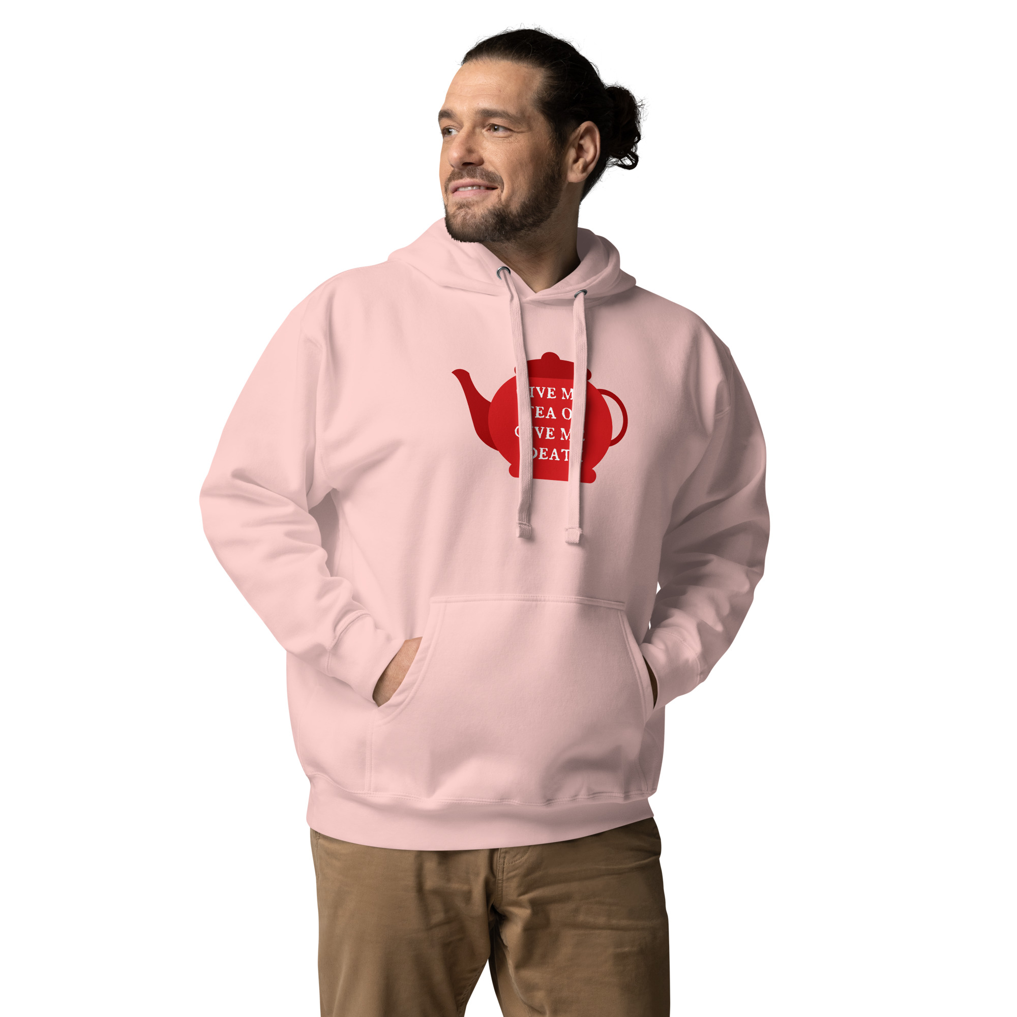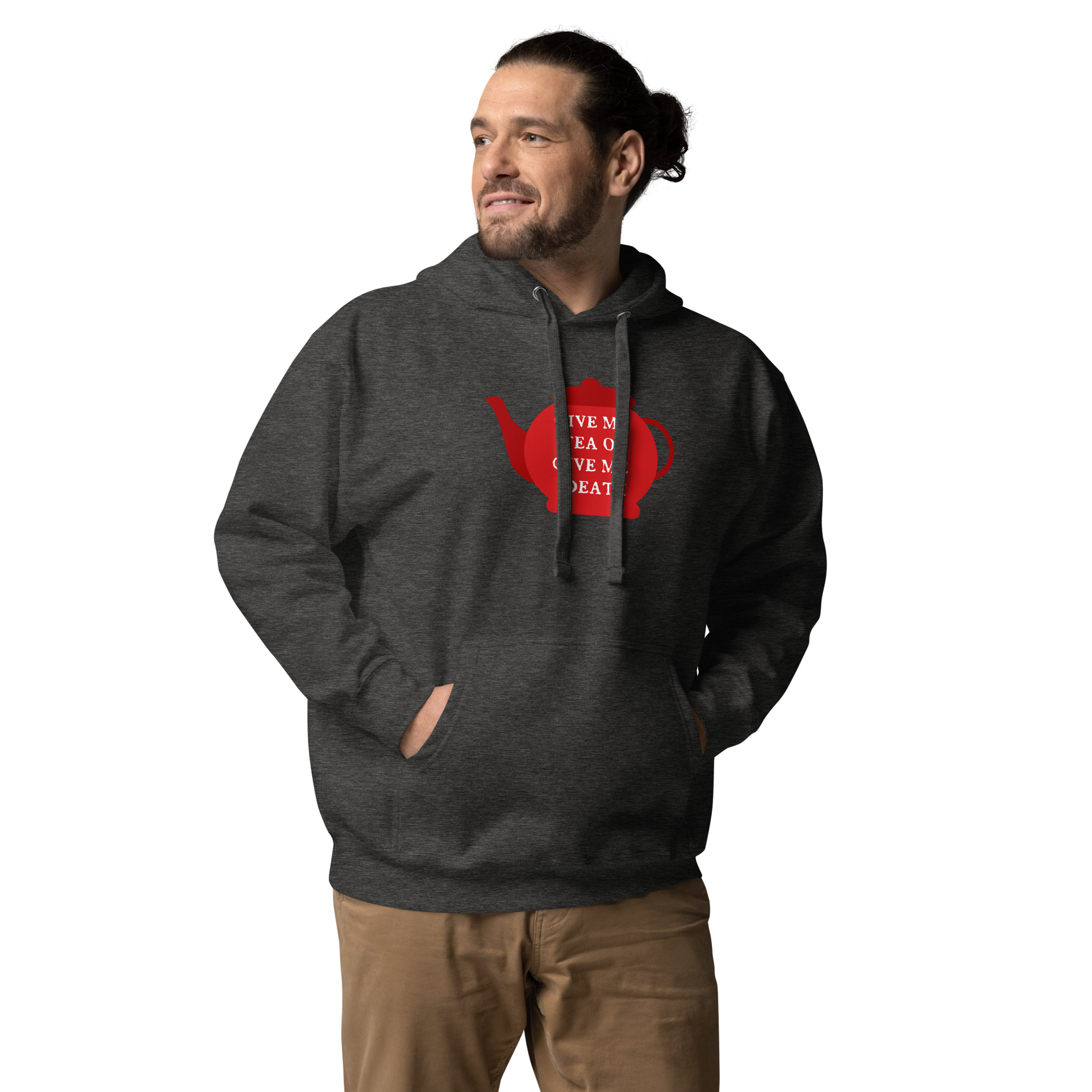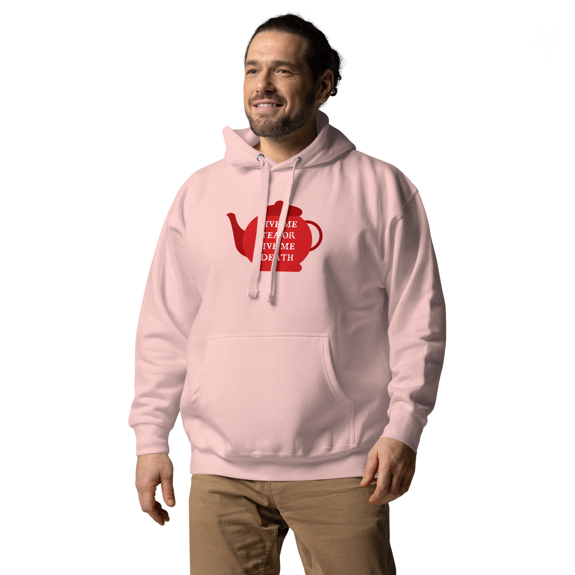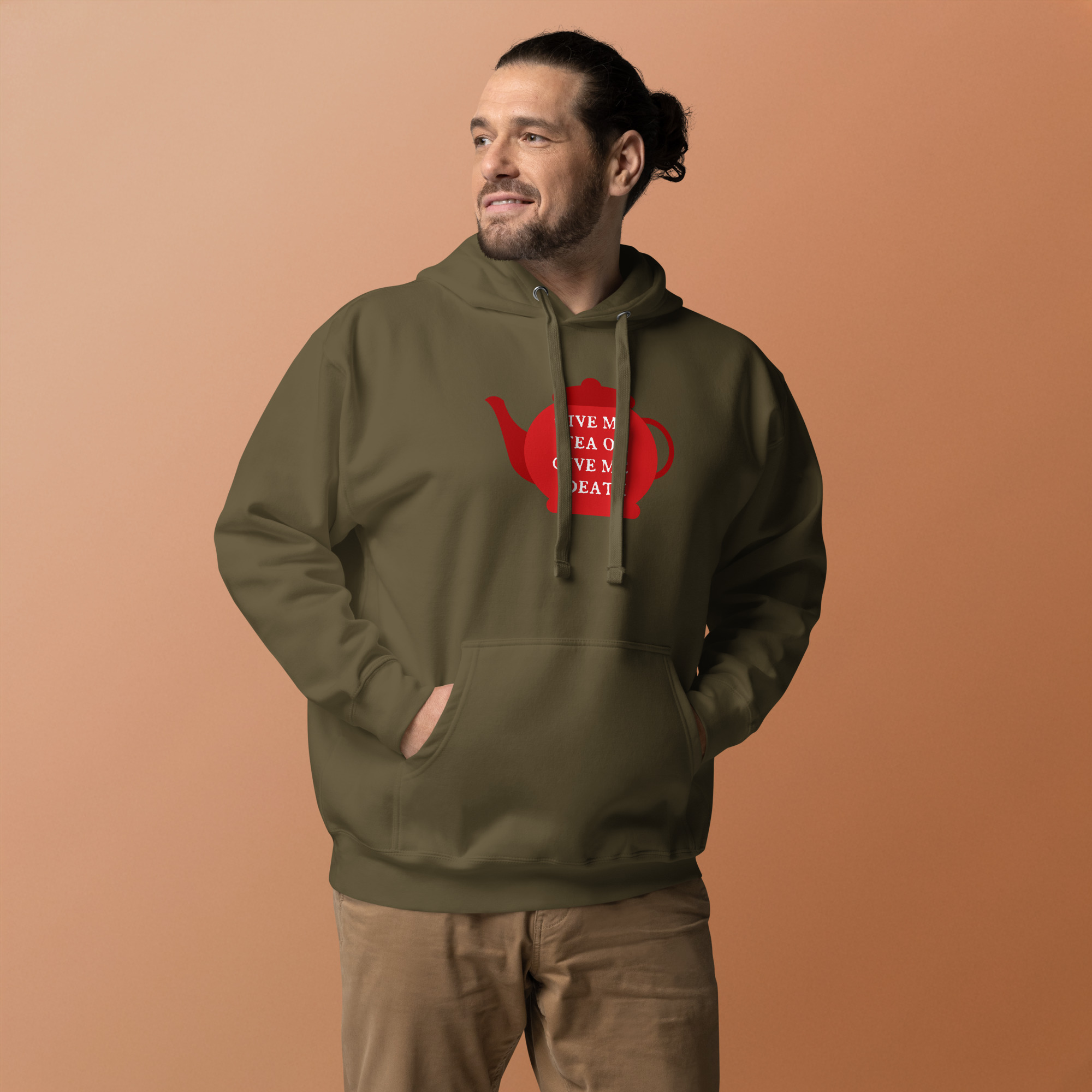 A playful twist on Patrick Henry’s famous revolutionary cry, this design declares “Give Me Tea or Give Me Death” — perfectly capturing the British obsession with tea. For the British, tea isn’t merely a beverage; it’s a national institution, a daily ritual, and the answer to virtually every situation from celebration to crisis.