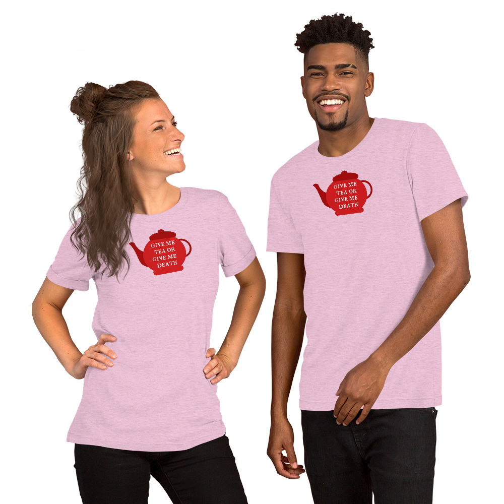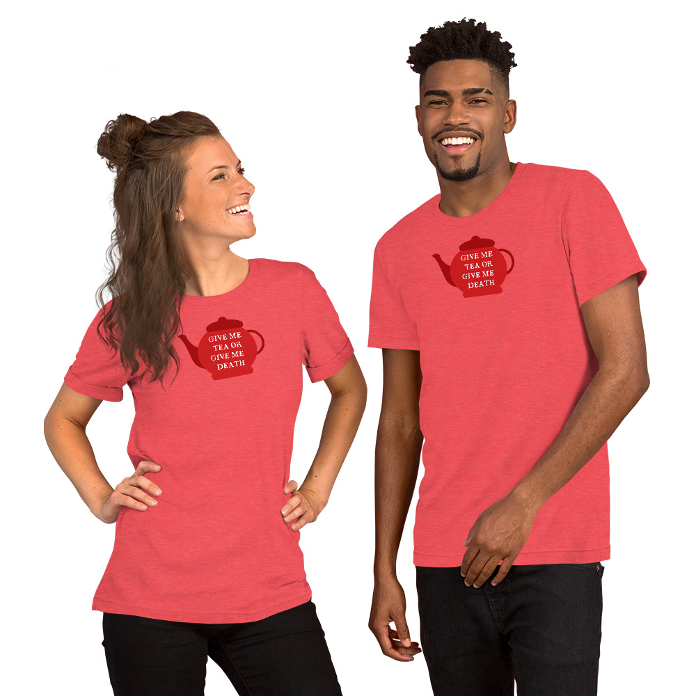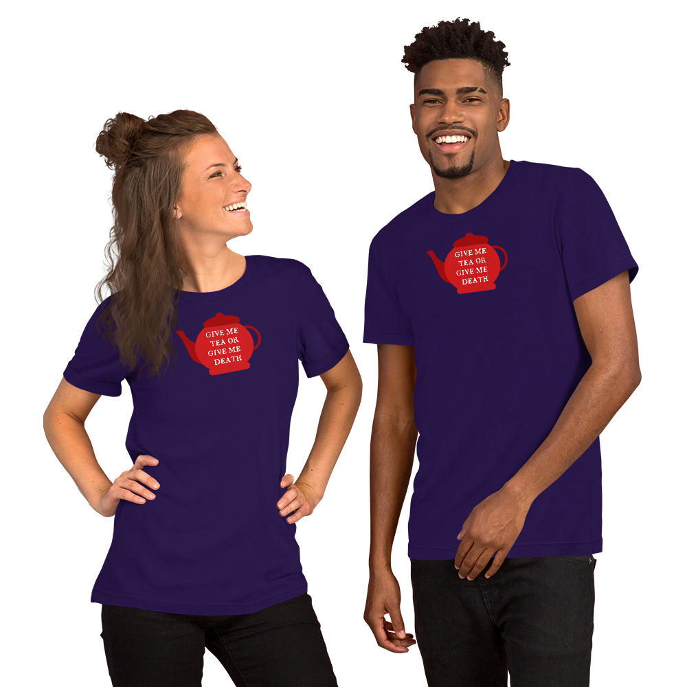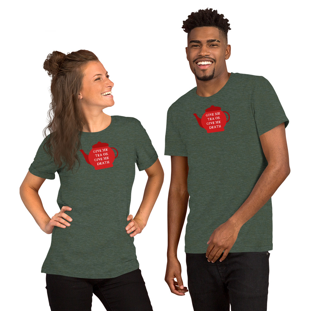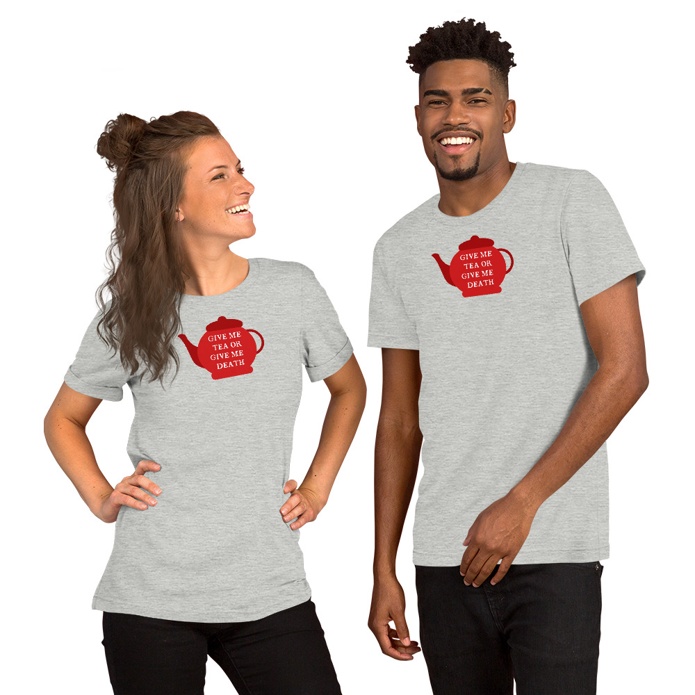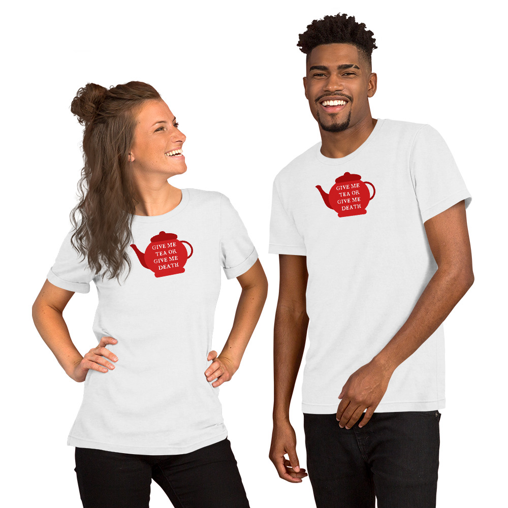 A playful twist on Patrick Henry’s famous revolutionary cry, this design declares “Give Me Tea or Give Me Death” — perfectly capturing the British obsession with tea. For the British, tea isn’t merely a beverage; it’s a national institution, a daily ritual, and the answer to virtually every situation from celebration to crisis.