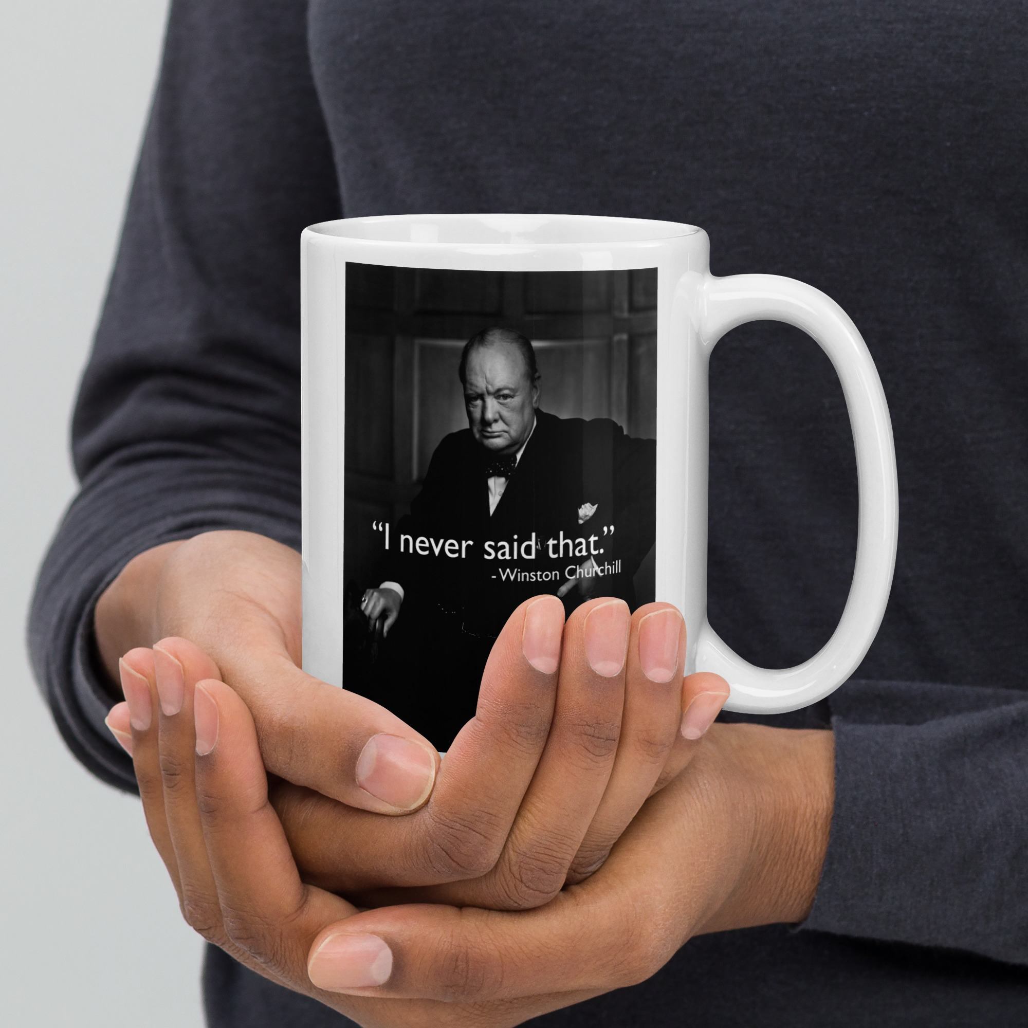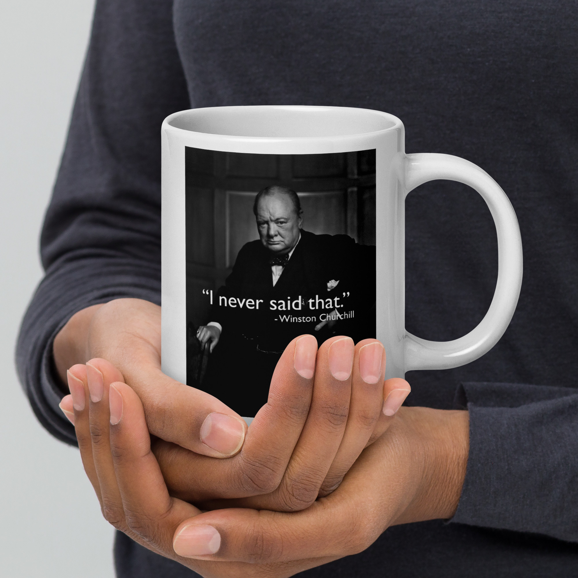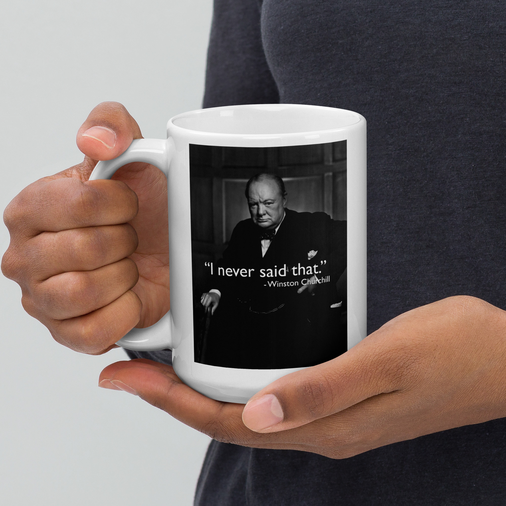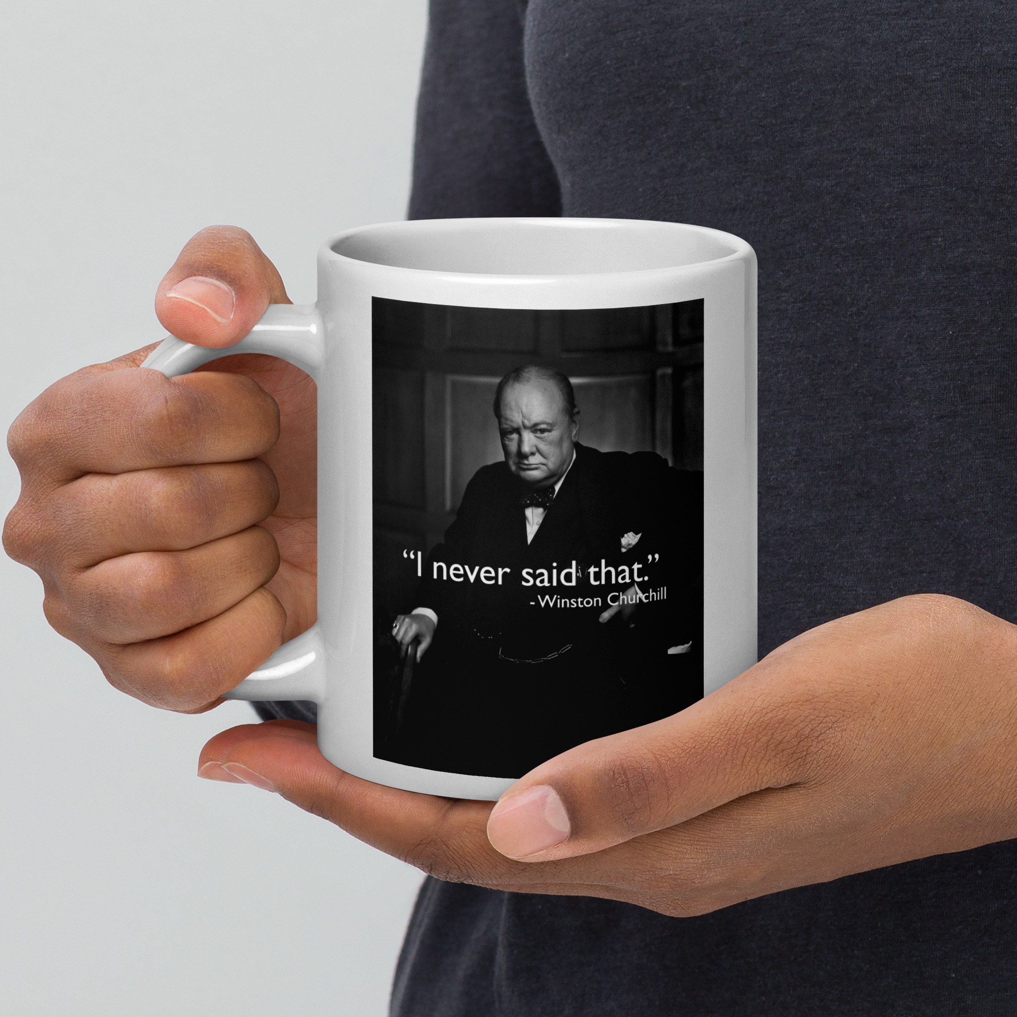 This humorous design plays on the countless quotes misattributed to Winston Churchill — Britain’s legendary wartime Prime Minister. The internet is full of inspiring quotes credited to Churchill that he never actually said, making “I Never Said That” the perfect tongue-in-cheek tribute to both Churchill’s genuine wit and his unwitting role as history’s most misquoted leader.