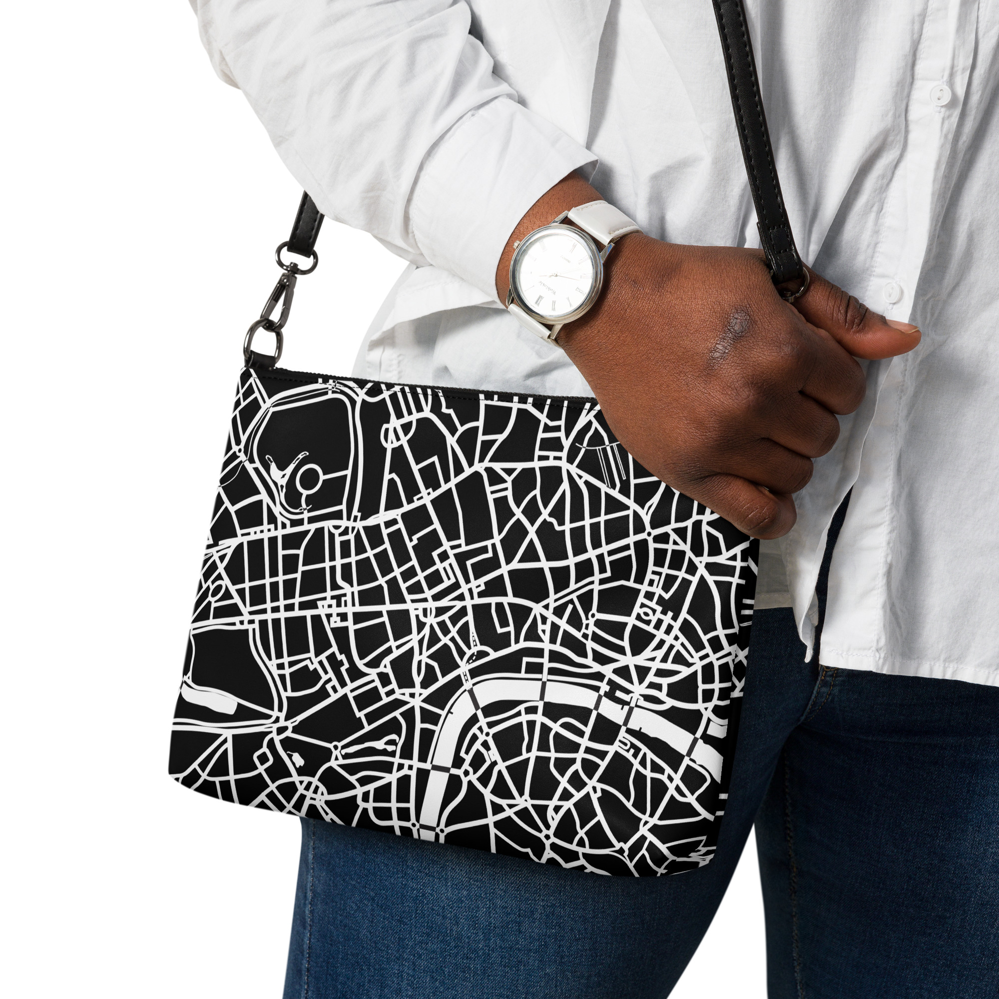 Keep your style on point and your hands free with our versatile crossbody bag. It’s made of premium faux leather and features dark gray hardware. Thanks to the zip-top closure and multiple inside pockets, you can keep your essentials secure and organized. Transform this crossbody bag with removable wrist and shoulder straps to style it for day-to-night looks.
