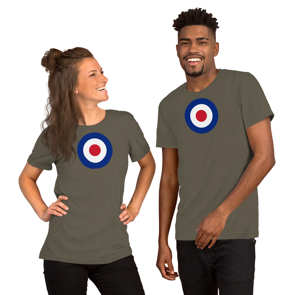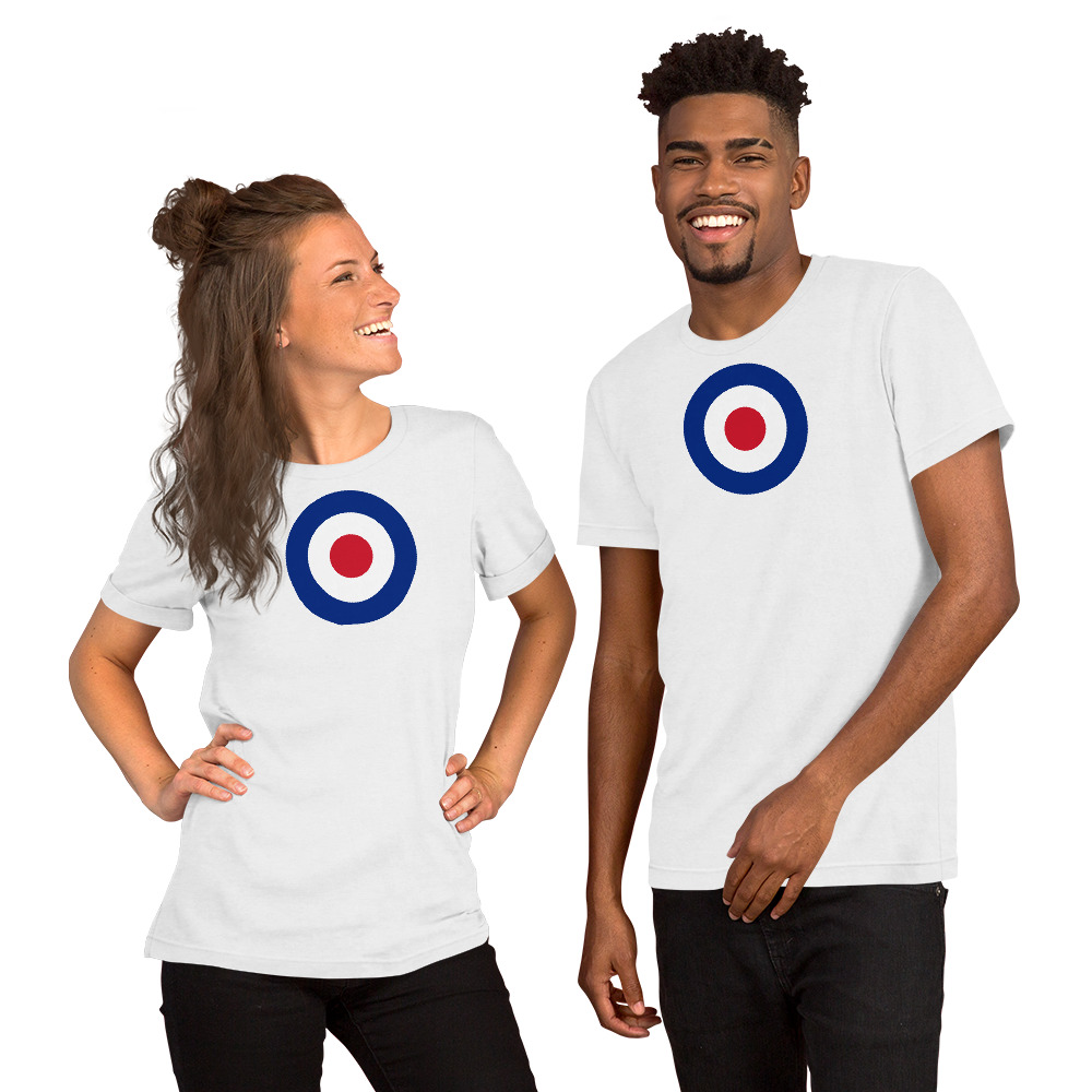 This design features the iconic RAF Roundel — the red, white, and blue circular emblem of the Royal Air Force. Adopted in 1942, the roundel has become one of the most recognized military symbols in the world, representing the bravery and sacrifice of RAF personnel from the Battle of Britain to the present day. The design also became a symbol of the Mod subculture in 1960s Britain.