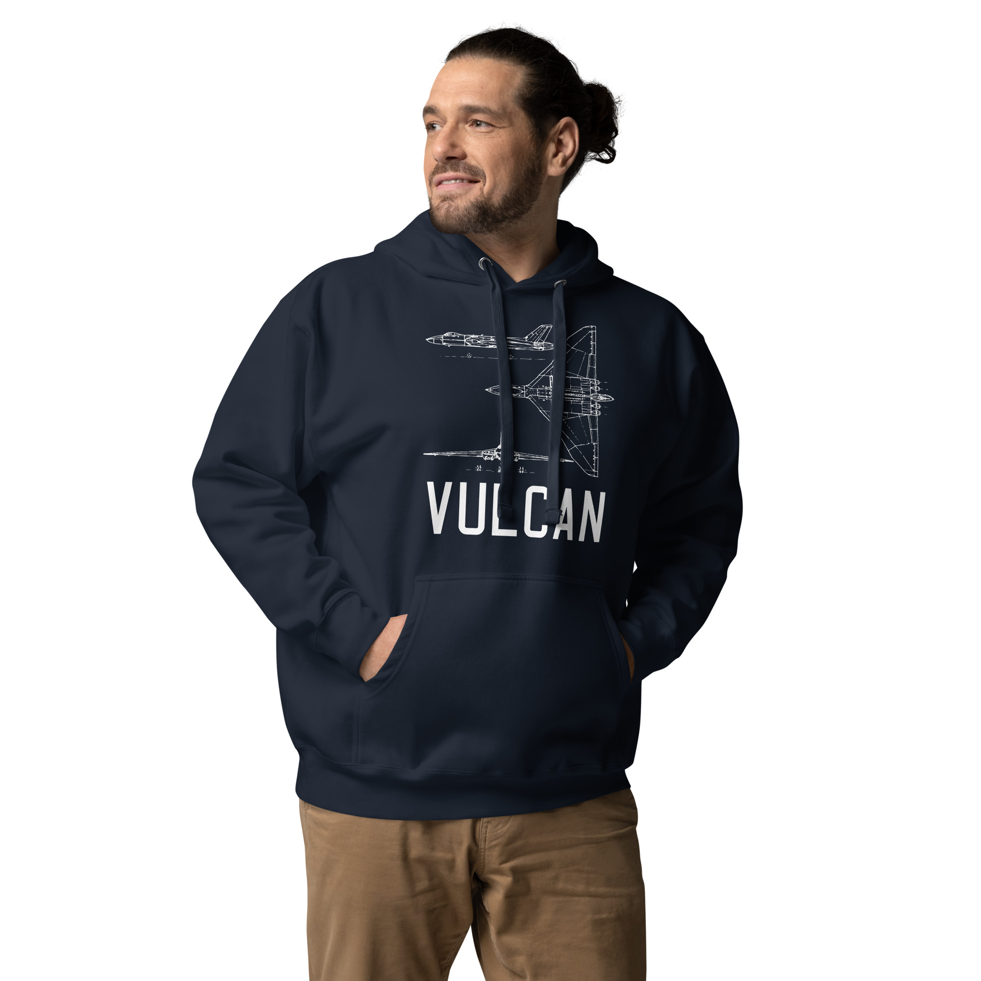 This design features a detailed schematic blueprint of the Avro Vulcan — one of the most dramatic and powerful aircraft in British aviation history. Part of the RAF’s V-bomber fleet during the Cold War, the Vulcan’s distinctive delta wing made it one of the most visually striking aircraft ever built. Its thunderous presence at airshows and its combat role in the Falklands War cemented its legendary status.