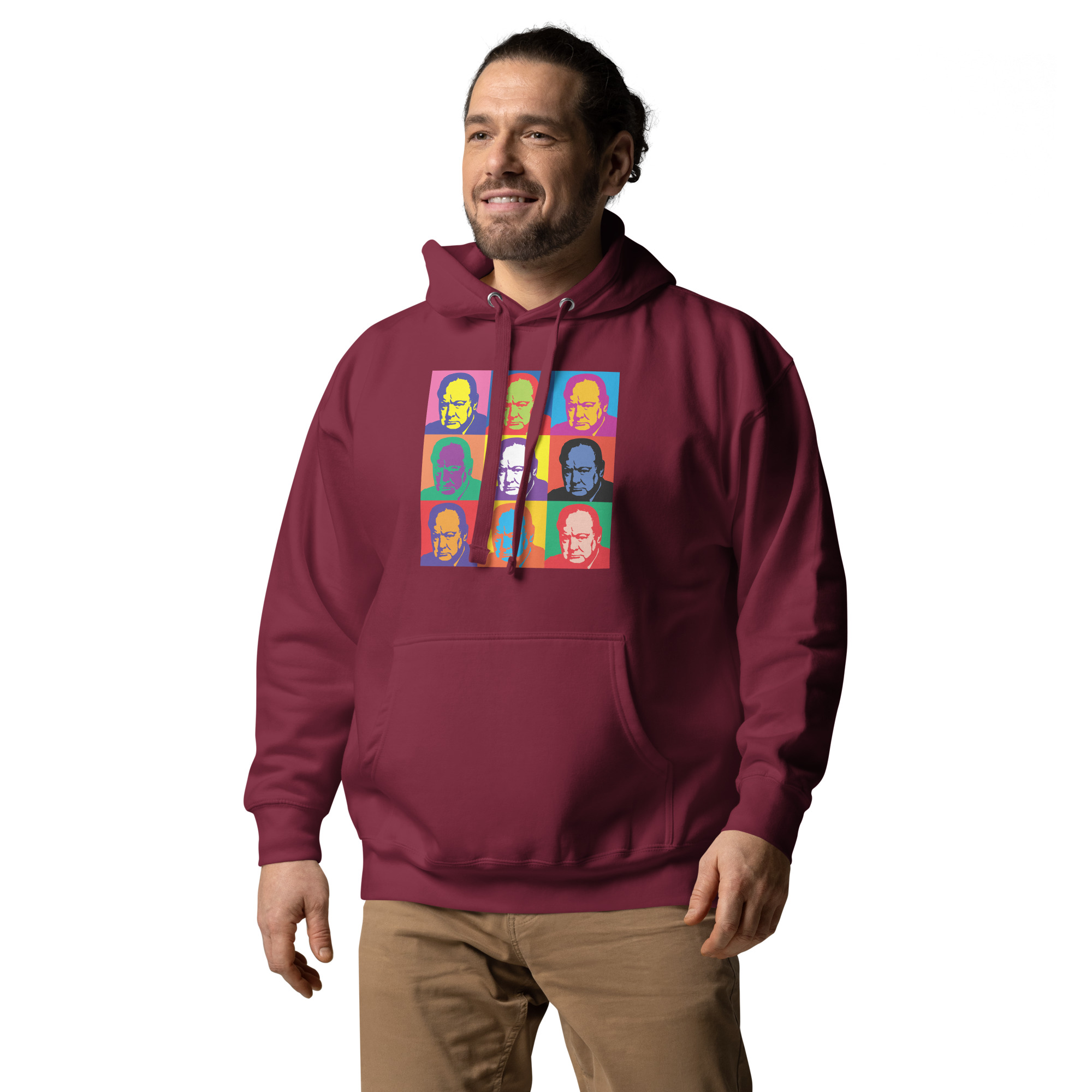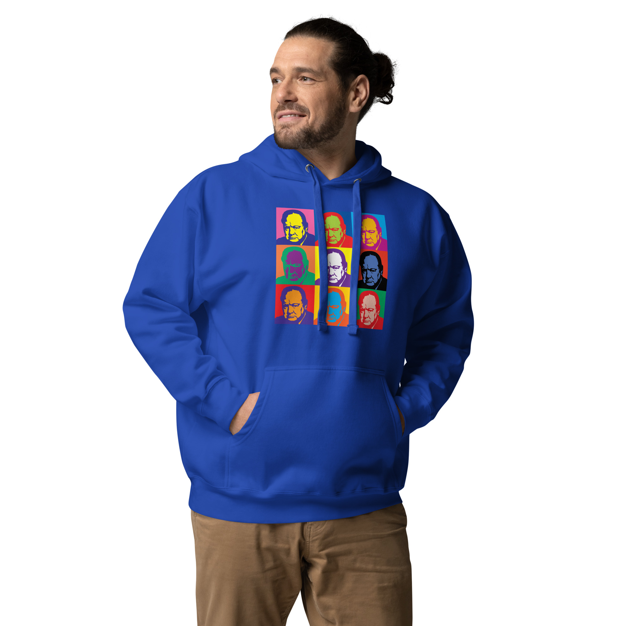 This striking design reimagines Sir Winston Churchill — Britain’s greatest wartime leader — in the bold pop art style made famous by Andy Warhol. Combining Churchill’s iconic bulldog determination with vibrant, modern artistic expression, this artwork bridges the gap between Britain’s finest historical moment and contemporary visual culture.